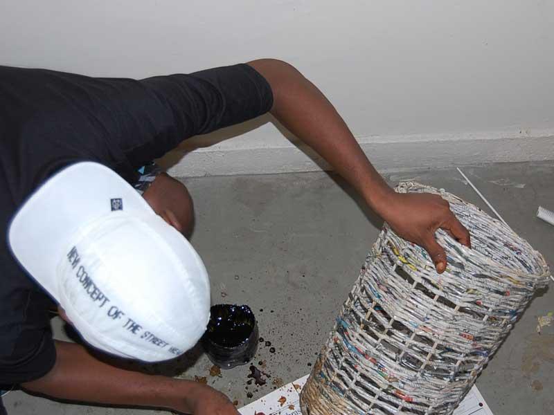 "Muitos já conheciam a forma de transformar os jornais usados em arte, então ampliamos o conhecimento deles com a técnica de trançado para montar peças, como vasos, cestas", conta a coordenadora da Oficina de Papel, Tereza Cristina Sales.