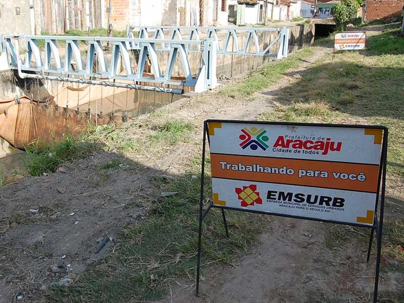 Desde o início dessa semana, a Prefeitura Municipal de Aracaju, por meio da Empresa Municipal de Serviços (Emsurb), realiza limpeza de canal com a técnica Sistema de Barragem Móvel no bairro Santos Dumont.