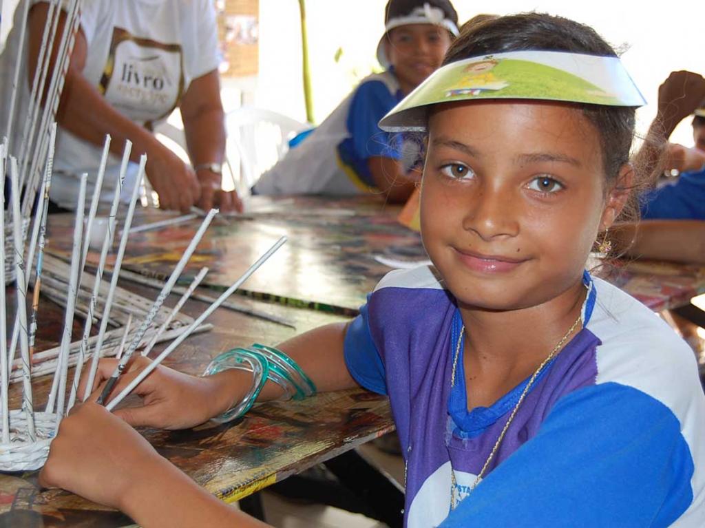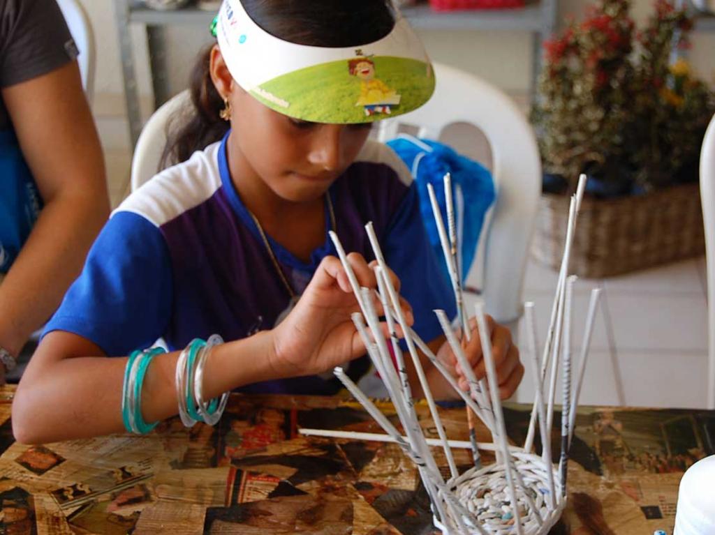 Micaele Menezes estuda na 4ª série da Escola Estadual Centro Machado Menezes, em Itabaiana, e diz que adora ler. "Já li a história de Zezinho e também a do Patinho. Eu gosto de ler, é importante para quando crescer ter um emprego bom". Sobre a oficina, ela conta que não sabia ao certo o que é reciclagem. "Aqui me ensinaram sobre a reciclagem, a importância de cuidar do meio ambiente e agora já estou fazendo um vaso", diz empolgada.