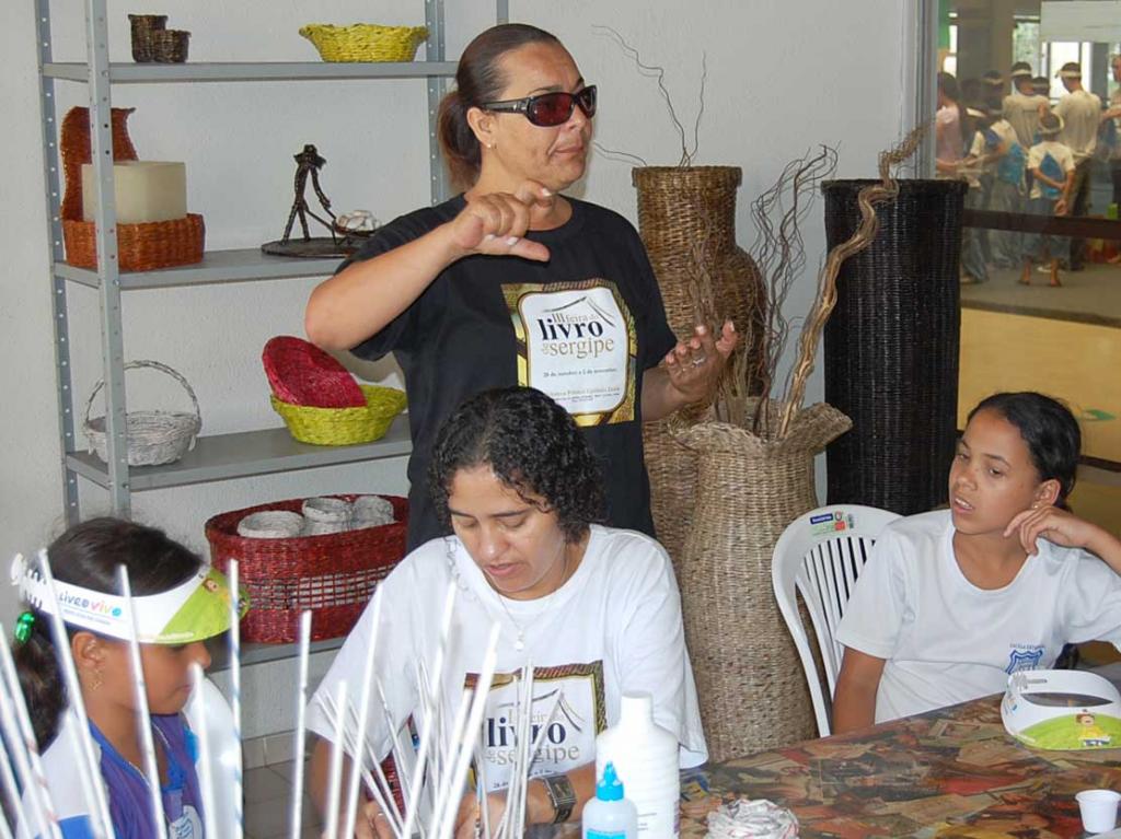 Olhar atento, jeito cuidadoso e muita vontade de aprender. Assim a pequena Micaele, de 11 anos, aprende a fazer arte a partir de jornais velhos na oficina de papel promovida pela Prefeitura de Aracaju, por meio de Empresa Municipal de Serviços Urbanos (Emsurb), parceira da 3ª edição da Feira do Livro. O evento está acontecendo na biblioteca Estadual Epifânio Dória.