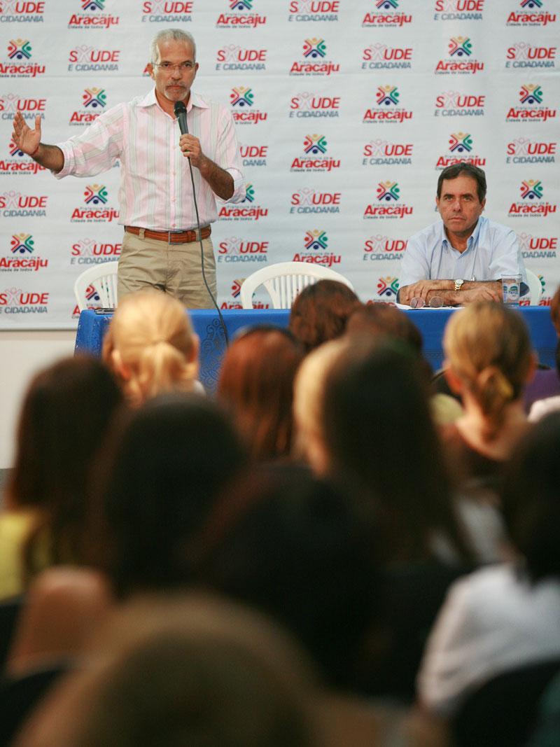 Edvaldo Nogueira iniciou a explanação fazendo um panorama dos avanços na política de saúde nos últimos oitos, quando ocorreu a expansão da rede e a consolidação do processo de municipalização. Nesse período, a Prefeitura Municipal de Aracaju (PMA) conseguiu dobrar o número de equipes de saúde da família; construir 15 novas unidades de atenção básica e dois hospitais de urgência e emergência para casos de média complexidade; realizar diversos concursos públicos; e ampliar os investimentos de 5% da receita corrente líquida para mais de 18%.