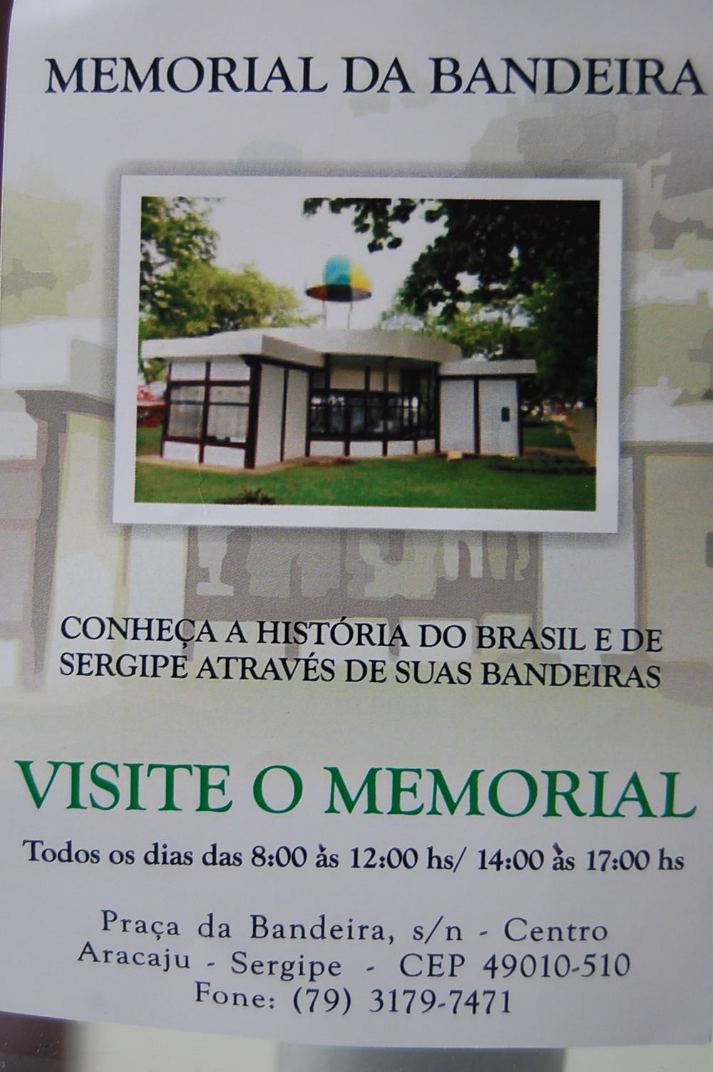 O Memorial da Bandeira, localizado na praça da Bandeira, s/n, Centro, fica aberto para visitação de segunda à sexta das 8 às 12 horas, e das 14 às 17 horas. Informações: (79) 3179-7471 / 3682.