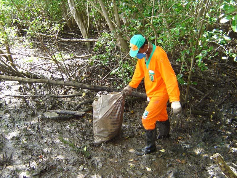 Desde a última quarta-feira, dia 9, a Empresa Municipal de Serviços Urbanos (Emsurb) está trabalhando na limpeza do mangue que margeia o calçadão da 13 de Julho. Até a tarde de ontem, 4.150 quilos de material foram recolhidos, sendo a maior parte material plástico (garrafas, copos, vasilhames de isopor ou sacolas de supermercado). Este ano, é a quarta intervenção da Prefeitura de Aracaju na limpeza do mangue da 13 de Julho, sendo que nos meses de janeiro, abril, maio e junho, quando foram executadas outros serviços, a Emsurb recolheu mais de 13 toneladas ao total. Para o trabalho, os agentes de limpeza adentram ao mangue para fazer a catação do material através de vassouras de aço e luvas de proteção, assim como botas de cano longo e máscaras, pois a estrutura das árvores com vegetação densa, raízes altas e terreno pantanoso impede a execução com pás, enxadas, carrinhos de mão ou máquinas. Outra dificuldade enfrentada pelas equipes de limpeza é o movimento da maré. Segundo a Diretoria de Operações, o serviço só pode ser realizado enquanto a maré está vazante. Porém, a cada dia de vazão da maré, mais material chega ao mangue. Infelizmente isso é constante, fruto do descarte indiscriminado de lixo nos rios e canais, acrescenta Gilson Ramos, diretor de Operações da Emsurb. Até a próxima semana, a Emsurb vai continuar na limpeza do mangue que margeia o calçadão da praia 13 de Julho, seguindo pela Avenida Beira Mar até as proximidades da Avenida Heráclito Rollemberg, deslocando as equipes, com a conclusão destinada ao bairro Industrial.