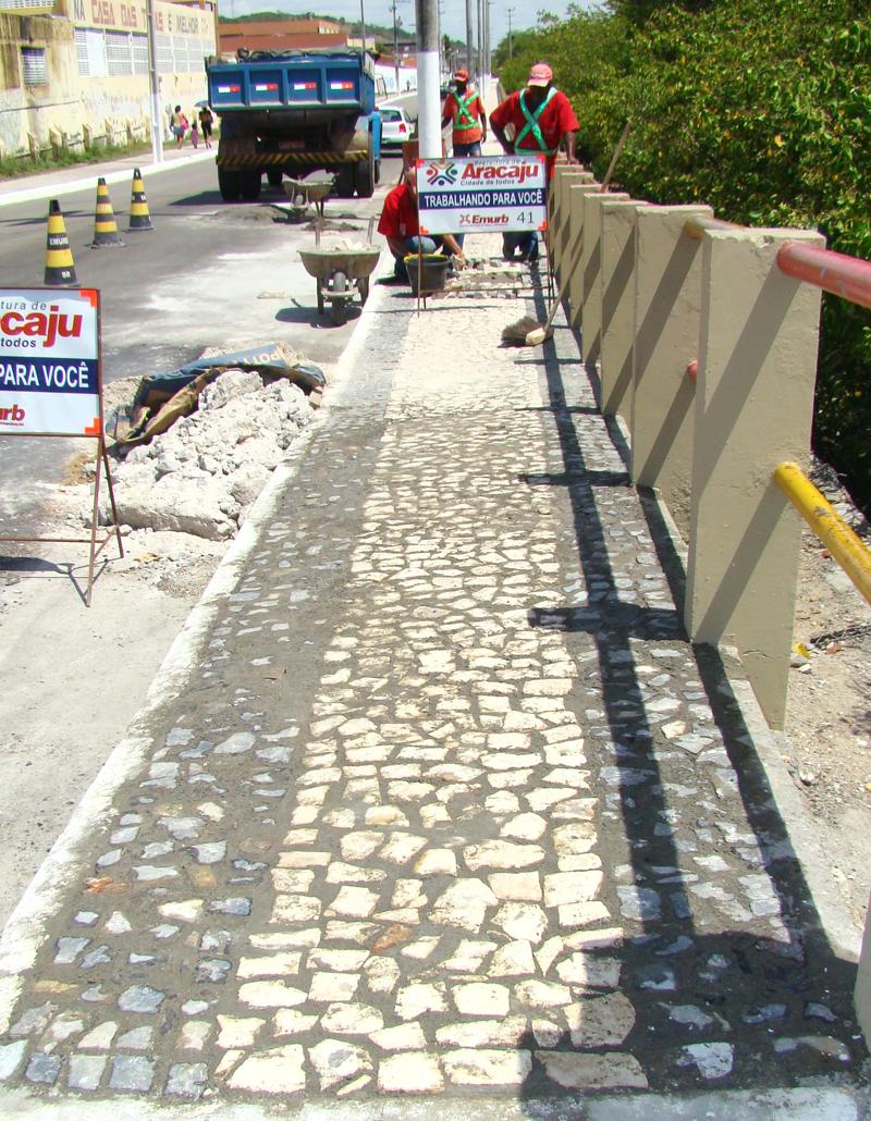 Para preservar a beleza do local e garantir a segurança dos pedestres, a Prefeitura de Aracaju, por meio da Empresa Municipal de Obras e Urbanização (Emurb), está recuperando o piso da Orla do bairro Industrial, zona Norte da cidade. A passarela que apresentava pontos de desgastes está sendo recuperada com pedras portuguesas para manter o padrão estético do ponto turístico.