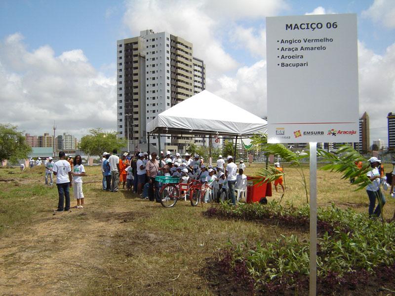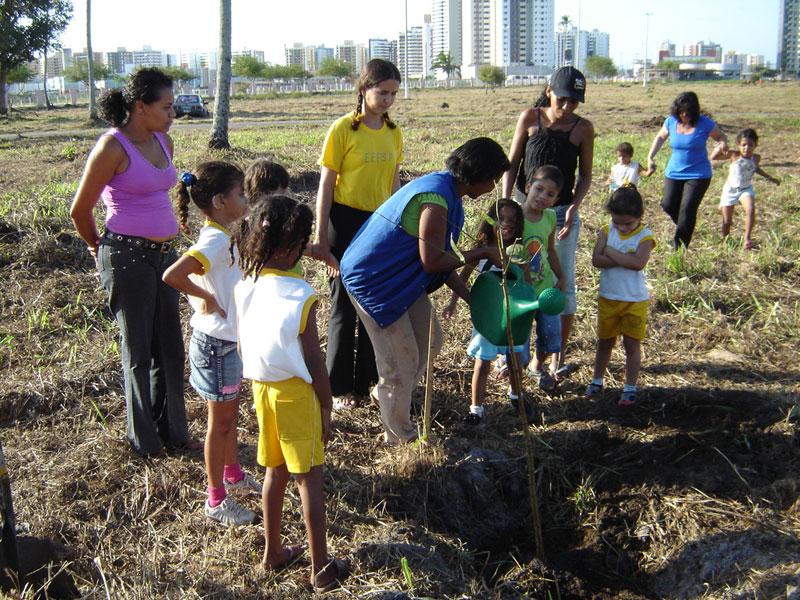 Mais de 500 crianças da rede municipal de ensino estão participando ativamente do Projeto de Reflorestamento do Parque Augusto Franco (Sementeira), promovido pela Empresa Municipal de Serviços Urbanos (Emsurb). Desde a manhã de ontem, elas estão mantendo um contato mais próximo com a natureza através do plantio de árvores que vão, num futuro próximo, transformar-se numa reserva ambiental no coração da cidade. Além da diversão corre-corre pelo parque, o projeto proporciona a conscientização ambiental através de ensinamentos sobre plantio de mudas, detalhes sobre as espécies, valorização do meio ambiente e importância do ecossistema. A quarta etapa do Projeto de Reflorestamento do Parque Augusto Franco foi iniciado na manhã de ontem, com a presença de autoridades e personalidades da cidade em comemoração ao Dia da Árvore e à chegada da Primavera. Os alunos das escolas municipais Juscelino Kubitschek e Anísio Teixeira plantaram 150 mudas de árvores frutíferas e arbóreas. À tarde também foram plantadas mais 131 mudas por crianças assistidas pelo CAPS Vida, da Secretaria Municipal de Saúde (SMS). Na manhã de hoje, outras 150 crianças participaram do plantio nas áreas do fundo do parque e outras 130 crianças vão plantar na tarde de hoje o futuro da cidade no encerramento desta etapa do projeto. De acordo com Célia Bastos, da Assessoria de Planejamento da Emsurb, envolver a sociedade civil no Projeto de Reflorestamento é muito importante para garantir a conservação das árvores. Nós não estamos preocupados em executar o serviço somente, mas em conscientizar a população sobre a importância de ter e conservar o meio ambiente arborizado, por isso engajamos autoridades e a sociedade no plantio, para que os maciços plantados não precisem ser reflorestados futuramente. Em todas as etapas dos maciços recebemos alunos de escolas da rede municipal, eles serão multiplicadores de conscientização em suas comunidades, ressalta. Para a coordenadora da Secretaria Municipal de Educação (Semed), Fátima Maynard, esse tipo de parceria entre as secretarias é muito importante para a população aracajuana. A Emsurb está de parabéns pela iniciativa de fazer de um aparente simples plantio, um importante processo de conscientização, trazendo crianças e representantes da sociedade para reconhecer a importância das árvores para o equilíbrio ambiental. Não pensar tecnicamente amplia os horizontes e possibilita a formação de grandes cidadãos. Essas crianças estão aprendendo na prática o que assimilam em sala de aula. Além de estarem se sentindo parte ativa da sociedade, de um lado autoridades e eles também, isso é fantástico, fazendo com que se sintam valorizados como sociedade civil, mexendo com certeza com a auto-estima desses alunos, declara. No período da tarde de hoje, alunos das Escolas Municipais Tetis Nunes e Santa Rita estarão plantando 130 mudas arbóreas nos maciços 4 e 7. Para o gerente de Áreas Verdes da Emsurb, Francisco Ney Maia, já foram plantadas mais de 500 mudas no reflorestamento. Desde ontem plantamos juntamente com alunos de escolas públicas mudas de árvores frutíferas, arbóreas, exóticas e da flora brasileira. É gratificante presenciar crianças plantando árvores que futuramente poderão desfrutar com seus filhos e netos, diz.