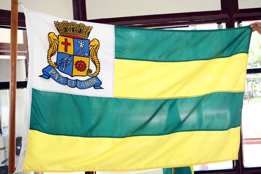 A cruz representa a religiosidade; o catavento homenageia a produção de sal da capital; o coqueiro a grande quantidade do produto encontrado na cidade; a roda dentada representa a evolução do tempo e do trabalho; os cavalos marinhos, o litoral e a coroa com cinco torres evidenciam que Aracaju é a capital do Estado.