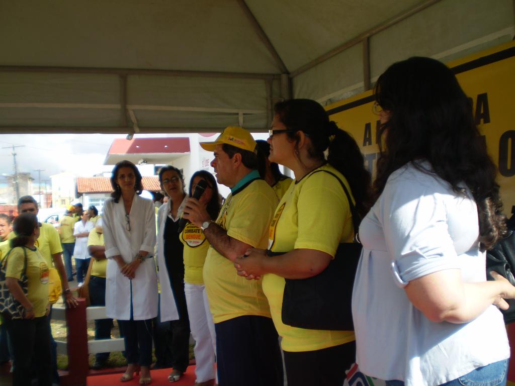 O secretário estava acompanhado da secretária-adjunta Fabiana Passos, da diretora de Planejamento Estratégico da SMS, Ana Márcia, e da gerente da USF Augusto Franco, Nedite Lessa. Também estavam na concentração as coordenadoras do Programa Municipal de Controle da Dengue, Taise Cavalcante, e da Rede de Atenção Básica, Yara Couto Vasconcelos.