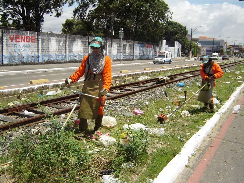 Capinação, varrição, roçagem mecanizada, coleta dos detritos e pintura de meio-fio. São esses os serviços de limpeza executados através de mutirão que a Empresa Municipal de Serviços Urbanos (Emsurb) iniciou ontem em toda a avenida Augusto Franco. A parte central da avenida linha férrea está sendo limpa com roçadeiras mecânicas, mas não está sendo dispensado o uso de ferramentas manuais, como gadanhos, para os serviços mais detalhados, como a retirada do mato que cresce entre os trilhos da linha do trem. Após roçagem, é realizada a varrição e o recolhimento do material. Uma das maiores dificuldades das equipes não é retirar o mato, mas o lixo depositado na linha de ferro. São sacolas de lixo doméstico, restos de construção, móveis velhos e todo tipo de entulho que é descartado ao longo da avenida sem qualquer tipo de cuidado com a limpeza e o visual da cidade. Isso faz com que o serviço seja mais demorado, pois o vento espalha os sacos plásticos pela avenida e os restos de comida acabam por entranhar no mato e entre as pedras que formam a base dos trilhos. O mutirão de limpeza é executado também ao longo da ciclovia e nas calçadas que margeiam a avenida e como complemento os meio-fios estão sendo pintados. Segundo com o gerente de Limpeza Urbana, José Roberto Gomes, a limpeza alcança toda a avenida. A limpeza abrange a via férrea como um todo, assim como as calçadas, diz. Segundo o coordenador de Manutenção de Vias Públicas da Emsurb, Everaldo Ferreira, os mutirões são ações paralelas à programação que a empresa desenvolve semanalmente e se diferem por serem executados serviços gerais concentrados em uma área. Os mutirões acontecem paralelamente a toda a programação semanal. Essa programação pode ser de varrição, roçagem ou capinação, conforme a necessidade do local. É um serviço de manutenção. No mutirão, todos os serviços são executados juntamente para propiciar uma intervenção mais duradoura na comunidade, explica. De acordo com a programação da Emsurb, as equipes devem concluir o serviço na avenida Augusto Franco até o dia 26, de onde seguem para a avenida Hermes Fontes.