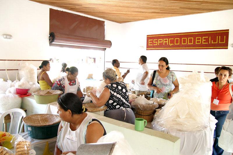 Limpeza e qualidade fazem parte do cotidiano das vendedoras de beiju e comidas típicas sergipanas no mercado Antônio Franco, através da reforma viabilizada pela PMA, por intermédio da Empresa Municipal de Serviços Urbanos (Emsurb). A padronização do setor garante um serviço higiênico, o que chama a atenção de quem visita o local. Com a reforma do espaço físico, as recentes instalações contam com novos pisos, mármores e teto forrado, oferecendo ainda boxes adequados para armazenar os alimentos como sarôio, mal-casado, pé-de-moleque. Agora estamos organizadas, está tudo limpinho, bonito e essa higiene nos dá mais crédito diante dos clientes, explica a comerciante Maria José dos Santos, que comercializa seus produtos há 55 anos no mercado. Lurdes Santos, comerciante recente, está entusiasmada com seu novo local de trabalho. Estamos bem alojadas, podendo proporcionar produtos de qualidade e condições adequadas de comércio. Além da segurança de nossos produtos, que estão sempre armazenados em local seguro, explica a vendedora.