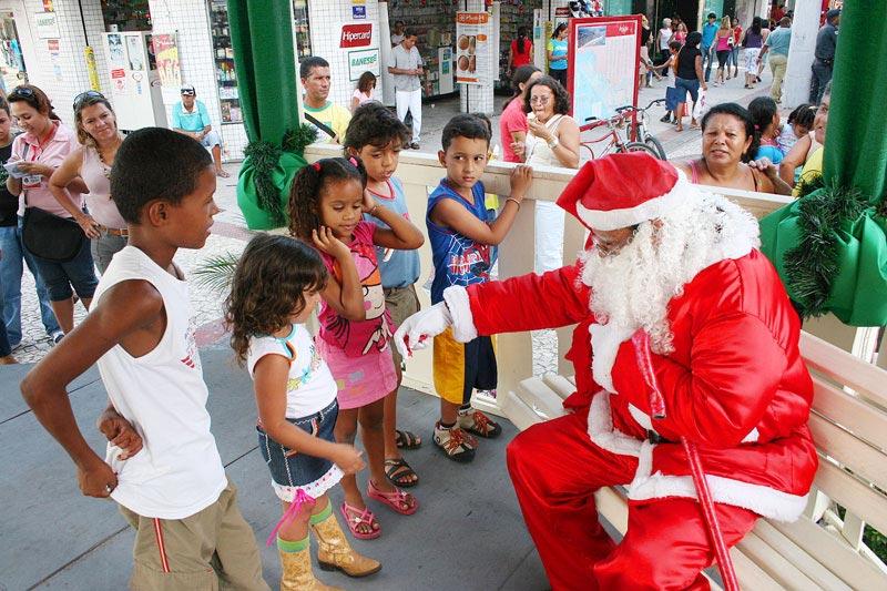 A capital sergipana foi contagiada pelo clima de Natal. Além das luzes, dos anjos, e de um presépio de 400 metros quadrados, localizado no Centro de Aracaju, a Prefeitura da Cidade trouxe um elemento novo para o cenário das festas de final de ano: a casa do Papai Noel. No início da tarde de ontem, o Papai Noel se instalou na casa, construída pela artista plástica Lânia Duarte nas imediações do Parque da Sementeira. Até o dia 30 de dezembro, ele e a Mamãe Noel estarão recebendo todas as crianças da cidade, para juntos celebrarem a tradição natalina com muita magia e história. A casa do Papai Noel estará aberta das 8 às 13 horas, voltando a reabrir das 14 às 19 horas diariamente. Quem visitar a casa vai poder conhecer com detalhes o dia-dia do bom velhinho, que todos os anos sempre traz muita alegria para crianças e adultos. Que todas as crianças venham nos visitar e acreditem nos seus sonhos para que assim eles se realizem, ressalta o Papai Noel, convidando a todos os aracajuanos para conhecer o seu lar. Coreto A Prefeitura de Aracaju também construiu um coreto no Centro comercial, entre os calçadões das ruas Laranjeiras e João Pessoa, onde o Papai Noel também está recebendo a criançada. Para Edila de Oliveira, 6, a expectativa de visitar o Papai Noel no Centro era muito grande. Todos os anos minha mãe me traz e eu não via a hora de ver o Papai Noel para pedir o meu presente, comenta. Patrícia Paiva e a filha de 5 anos visitaram o Papai Noel e acharam o Coreto um ótimo local para o encontro. Agora o espaço está mais amplo e as crianças podem até passar mais tempo com o Papai Noel e até mesmo aproveitar a decoração, que ficou linda, declara Paiva. Pela primeira vez em sua vida, Alexandre Santana, 7, teve a oportunidade de conhecer o Papai Noel. Meu sonho era tocar no Papai Noel. Antes eu tinha medo e eu hoje estou muito feliz por está aqui. Esse era o presente que eu queria. Agora vou pedir a minha mãe para me levar na casa dele, lá no parque, comenta Alexandre.