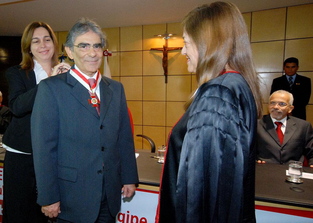 O Colégio de Procuradores de Justiça do Estado de Sergipe, em sessão solene realizada na noite da última sexta-feira, dia 15, no auditório do Ministério Público Estadual (MPE), prestou homenagem ao ministro do Supremo Tribunal Federal (STF) e presidente do Tribunal Superior Eleitoral (TSE) Carlos Ayres Britto. Na ocasião, foi entregue ao homenageado a mais alta comenda do colegiado, a outorga do ‘Colar do Mérito Tobias Barreto'.