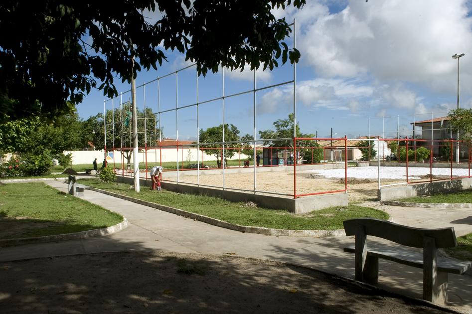 Além de implantar bancos de concreto, parque infantil e iluminação especial, a Prefeitura também está reestruturando a quadra de esportes localizada na parte central da praça. Um novo alambrado e telas de proteção serão instalados. O chão da quadra, antes de areia, agora vai ser todo de grama.