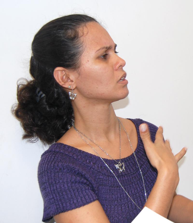 "A parte teórica do curso é transmitida por mim, a intérprete. Mas toda a parte prática, o ensino do uso dos sinais, é realizado pelo instrutor. Eu apenas dou suporte na interação dessas informações com o público", explicou a intérprete em Libras e coordenadora do Centro de Apoio ao Surdo (CAS), Tálita Cavalcante.
