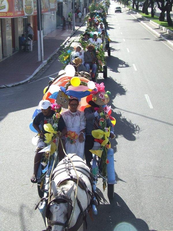 O 'São João da Integração' da Secretaria Municipal de Assistência Social e Cidadania (Semasc) da Prefeitura de Aracaju levou centenas de idosos às ruas da capital na tarde da última quarta-feira, 10, durante a realização do 18º Cortejo Caipira. Vestidas de matutos, cerca de 1.500 pessoas de 26 grupos de convivência de idosos da Semasc e um grupo de convivência do Serviço Social do Comércio (Sesc) percorreram as principais ruas da cidade em 50 carroças enfeitadas que conduziram o casal caipira até o clube Cotinguiba, onde os noivos receberam os cumprimentos dos convidados ao som de um animado forró.