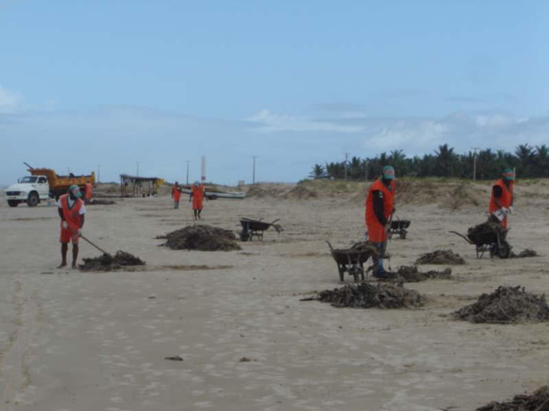 A Empresa Municipal de Serviços Urbanos (Emsurb) terminou a semana com mais de mil toneladas de sargaço recolhidos nas praias de Aracaju. O serviço vem sendo executado desde o último dia 6 de fevereiro, nas praias de Atalaia, Aruana e José Sarney. O material coletado nas praias é deslocado para o Aterro Controlado, situado no bairro Santa Maria, com um procedimento diferenciado. Lá o material é depositado em uma célula diferenciada e coberta com um material argiloso para evitar o mau cheiro, explica o gerente de Limpeza Urbana, Roberto Gomes. Roberto alerta ainda aos banhistas sobre o perigo ao adentrarem ao mar. Estamos controlando a limpeza dos sargaços na areia, mas os banhistas devem ficar atentos, pois essa vegetação é relativamente grande e cheia de ramificações, podendo trazer transtornos como afogamentos, informou.
