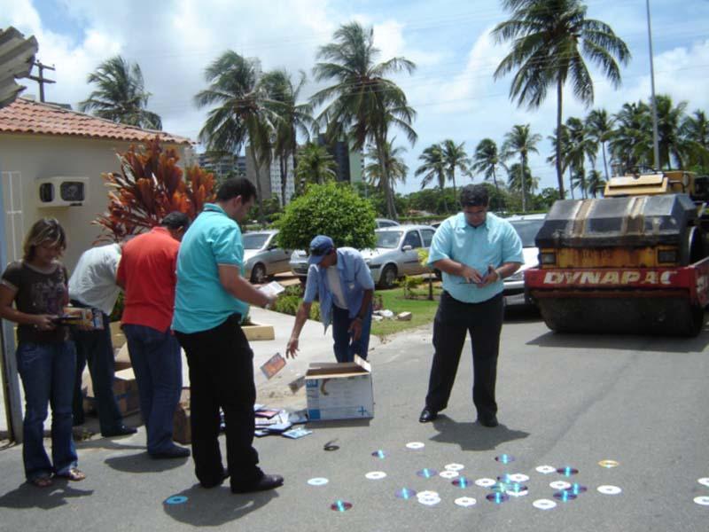 Os produtos vendidos em locais impróprios, que foram apreendidos na última fiscalização da Empresa Municipal de Serviços Urbanos (Emsurb), foram destruídos na manhã de hoje, sexta-feira, com a colaboração da Empresa Municipal de Obras e Urbanização (Emurb), que emprestou um rolo-compressor. A fiscalização da Emsurb recolheu as mercadorias dos ambulantes que insistiram em contrariar a lei, vendendo produtos de origem duvidosa e em locais proibidos. De acordo com o diretor de Espaços Públicos, Antônio Carlos Mota, todo o material de apreensão pode ser recuperado, desde que comprovem nota fiscal e tenham autorização para utilizar o espaço. Ficamos com os produtos até o prazo de 15 dias, caso o proprietário não apareça fazemos doação para uma instituição de caridade que necessite. Mas, essa última apreensão foi diferente, todos eles eram de origem duvidosa, informou o diretor. Para o presidente da Emsurb, Moacir Santana, essa apreensão serviu de exemplo para o restante dos ambulantes. Foram 398 DVDs e 95 CDs piratas todos eles vendidos em lugares não autorizados pela lei, disse o presidente. Segundo a Lei Municipal 1.500/89, é proibido o comércio ambulante em distância inferior e cinco metros das esquinas, nos abrigos do transporte coletivo e nas calçadas com largura inferior a dois metros.