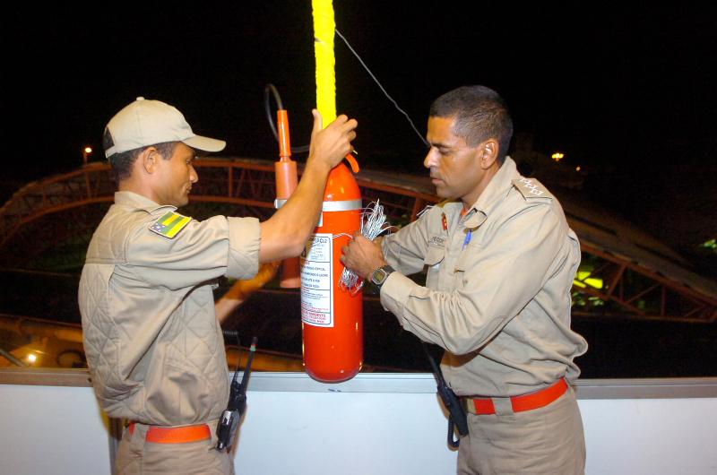 Os bombeiros realizam todos os dias a checagem nos camarotes, bares temáticos, e demais instalações, onde alguns itens são verificados como extintores, fiação, além de outros aspectos técnicos. "Existem duas centrais de gás que atendem aos bares e devem ser checadas, os camarotes também tem de ser vistoriados sempre, para não permitir irregularidades como esta", apontando um extintor preso a fios de arame que foi corretamente posicionado pelos bombeiros.