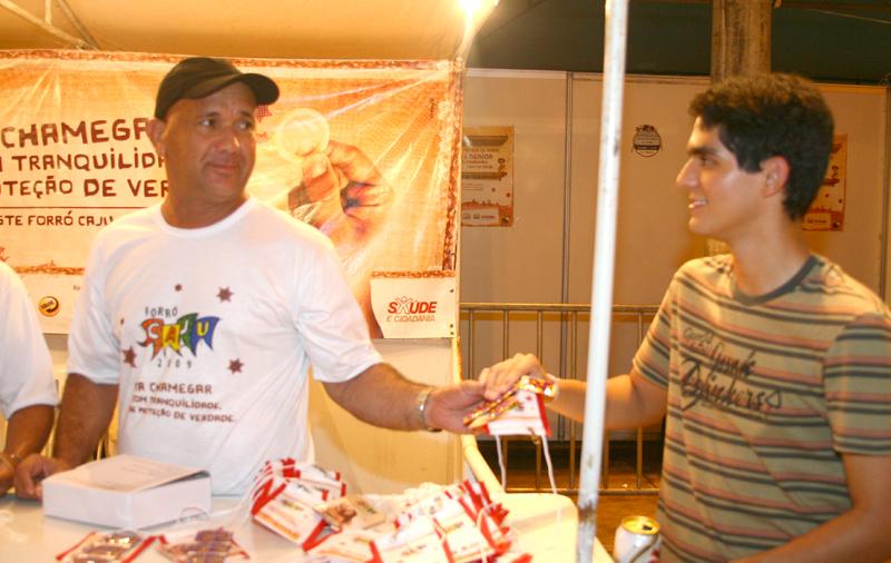 O Forró Caju não é só folia, é espaço pra cuidar da saúde também. Pensando nisso, a Secretaria Municipal de Saúde (SMS) de Aracaju, através do Programa de Prevenção às DST's - Aids, montou um estande para distribuição de preservativos femininos e masculinos durante todas as noites do evento. Situado próximo ao posto do Serviço de Atendimento Móvel de Urgência (Samu 192 Aracaju), o espaço conta com três funcionários que distribuem as 'camisinhas' com folhetos informativos.