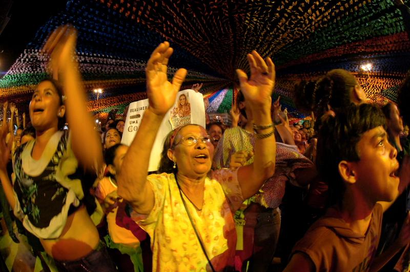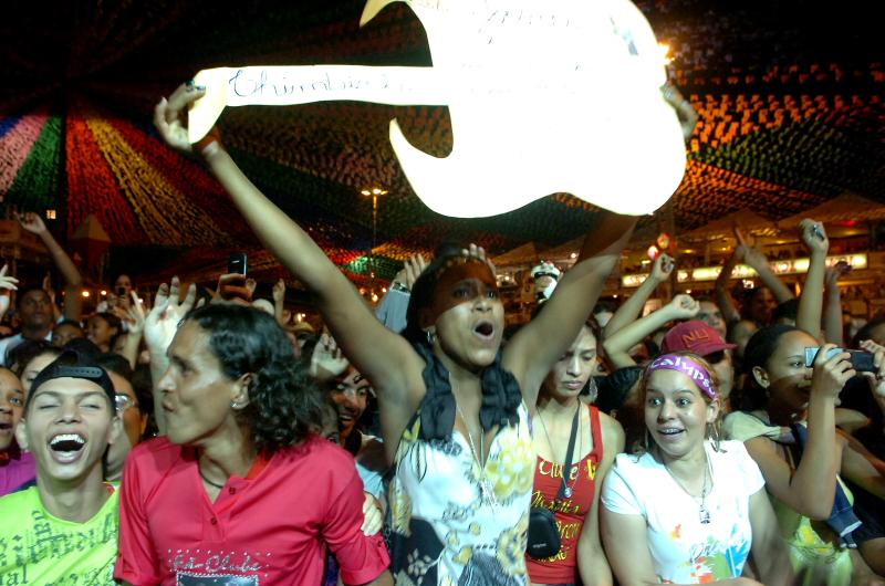 O auge da quarta noite do Forró Caju 2009 começou com uma contagem regressiva. Foi ainda com as cortinas do palco Luiz Gonzaga fechadas que a vocalista Joelma, da banda paraense Calypso, anunciou o começo do show mais esperado de hoje. Os fãs em êxtase contagiaram com gritos as mais de 150 mil pessoas presentes na praça Hilton Lopes, e disputaram um espaço para ver a banda de perto.