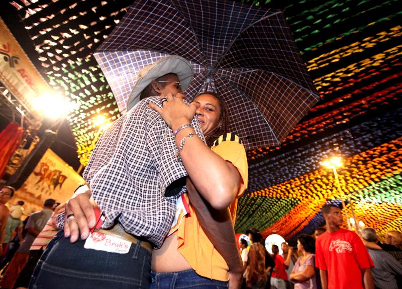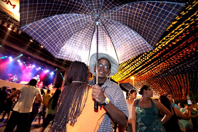 O casal Acácia Santos e Alisson Rocha, mesmo com o guarda chuva armado, não desistiu da festa. "Estamos vindo desde a abertura do Forró Caju. Pode estar caindo até um pé d´água que marcamos presença todos os anos", declarou Alisson.