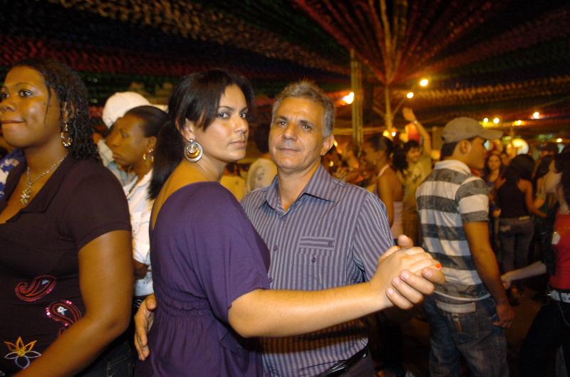 O casal Watson e Patrícia Oliveira pela quinta noite forrofiaram com uma energia inesgotável. "A ornamentação da festa está muito bonita e as pessoas estão emanando alegria o tempo inteiro. Pretendemos vir até a última noite", garante o agente de turismo.