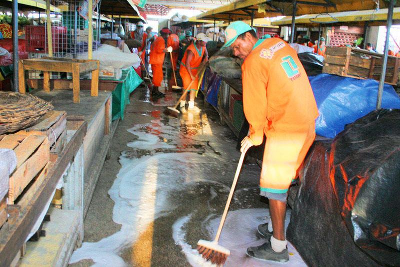 Em virtude do feriado do Dia de Tiradentes, 21 de abril, os Mercados Albano Franco e Thales Ferraz terão o horário de funcionamento de meio expediente neste sábado, das 6 às 12 horas. Já o horário de funcionamento das feiras de Aracaju não será alterado. De acordo com o diretor de Espaços Públicos da Emsurb, Antônio Carlos Mota, no final de semana está programada a lavagem no Mercado Albano Franco. Esta lavagem aconteceria no domingo da semana passada, dia 15, e na segunda-feira, mas de última hora recebemos a solicitação dos comerciantes para que a data fosse alterada para este próximo, já que sábado será feriado. Atendendo ao pedido, a Emsurb realizará toda a lavagem no final de semana, explica.
