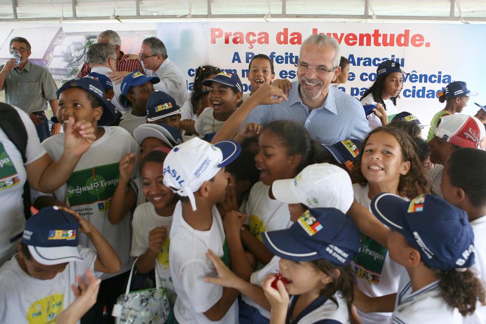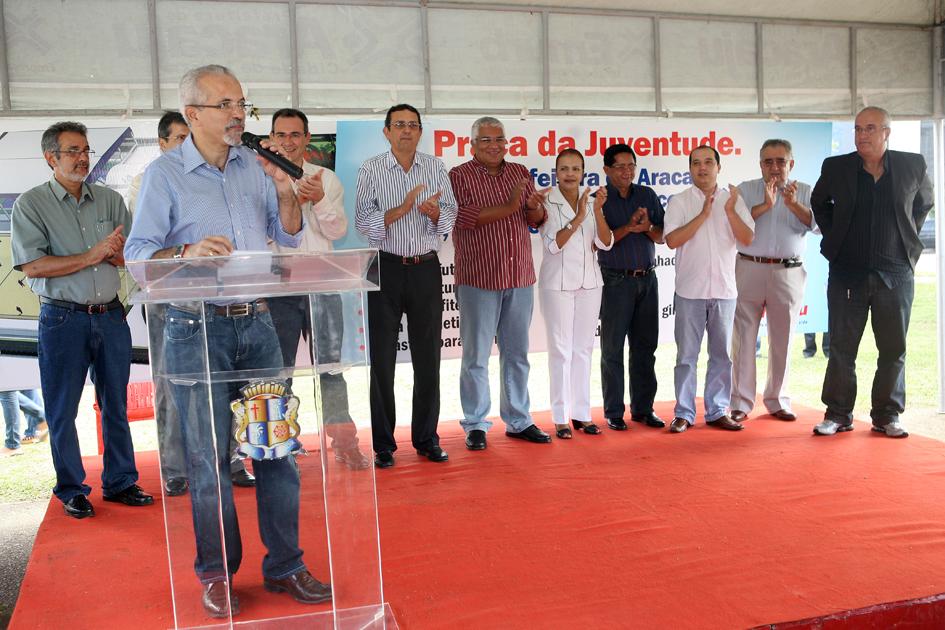 A manhã desta sexta-feira, 31, foi de alegria e surpresa para os moradores do conjunto Augusto Franco e adjacências. Durante solenidade ocorrida na praça João Goulart, conhecida como praça do Cuscuz, o prefeito Edvaldo Nogueira e o vice, Silvio Santos, assinaram a ordem de serviço para a construção de um complexo esportivo e de convivência, chamado de Praça da Juventude - a primeira do Brasil.