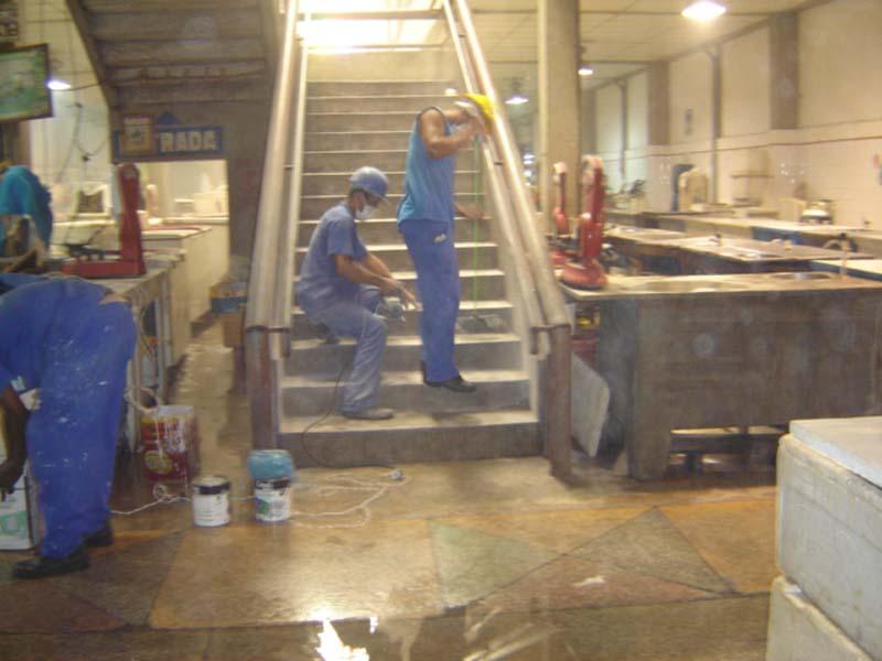 Desde a última quarta-feira, dia 16, a Prefeitura Municipal de Aracaju (PMA), por meio da Empresa Municipal de Serviços Urbanos (Emsurb), vem intensificando o serviço de fiação elétrica no setor de pescados do Mercado Albano Franco. Segundo Daniel Sales, arquiteto da Emsurb, a execução da obra já persiste pela noite e madrugada. Estamos adiantando ao máximo, iniciamos o trabalho às 13 horas e vamos até às 4 horas do dia seguinte. Para isso, contamos com uma boa equipe que vai revezando de acordo com o turno, explica. Além da reestruturação das escadas e a delimitação da área dos extintores, a equipe trabalha também na fixação das canaletas. Como toda fiação elétrica será mudada, passando agora a ser aérea, estamos fixando no teto as canaletas por onde passarão as eletrocalhas e os fios elétricos, que serão de aço galvanizado, informa Sales. Para maior segurança do permissionário, a Emsurb colocará o suporte da tomada em cada banca. Cada banca vai possuir a sua tomada e a altura será um pouco acima do balcão; prevenindo choques e, inclusive, os chamados ´gatos´, diz. A Emsurb também estuda a possibilidade de mudar algumas bancas que estão enferrujadas e adicionar grelhas no piso para melhor escoar a água. As medidas paliativas já estão sendo feitas. Trocamos o ralo de 75cm² de diâmetro para o de 150cm², para não haver problemas com entupimento, explica. Durante todo o andamento da obra, somente o setor de pescado terá o funcionamento de meio expediente, das 6 às 13 horas - horário estabelecido em comum acordo com os comerciantes do local.
