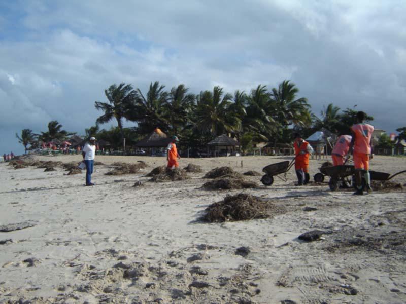 A Prefeitura Municipal de Aracaju, através da Empresa Municipal de Serviços Urbanos (Emsurb), realizará neste final de semana uma limpeza especial na areia da praia dos Artistas até a Sarney. A operação foi iniciada hoje, sexta-feira, e prossegue durante o final de semana. De acordo com o coordenador de Limpeza Urbana, Everaldo Ferreira, as fortes chuvas motivaram a ação. As fortes chuvas trouxeram a vegetação o sargaço para a praia, deixando ela suja. Estamos com as equipes para deixá-la pronta para o final de semana, diz ao falar das duas equipes, cada uma com 15 agentes, duas caçambas e uma retroescavadeira. Para o gerente do bar próximo ao local, José Alicio das Graças, a limpeza no local ajuda muito, pois deixa o local convidativo. O sargaço deixa a praia suja, por mais que seja uma sujeira vegetal, a impressão que dá é ruim. Com a prefeitura fazendo a limpeza, vou ter a certeza que o final de semana será movimentado no bar, fala. Todo o material coletado nas praias está sendo deslocado para o Aterro Controlado, situado no bairro Santa Maria, com um procedimento diferenciado. Ao final do dia, as caçambas transportam todo o sargaço para o aterro. Lá, o material é depositado em uma célula diferenciada e coberto com um material argiloso para evitar mau cheiro, explica Ferreira.