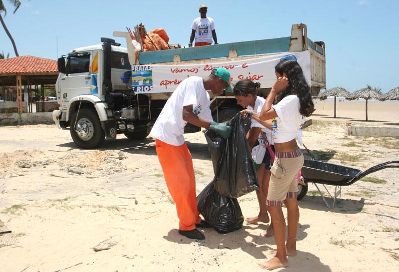 Ontem, domingo, centenas de pessoas participaram do mutirão de limpeza das praias, promovido pela Frente em Defesa das Águas de Sergipe, em parceria com diversos órgãos públicos, ONGs, sindicatos e empresas privadas, a exemplo de escolas, Lions Club, Central Única dos Trabalhadores (CUT), Polícia Militar e Petrobras. A Prefeitura Municipal de Aracaju (PMA) foi uma das apoiadoras da mobilização e teve atuação destacada no evento, que encerrou a campanha ´Praias e Rios - Vamos Limpar e Aprender a não Sujar´. Por meio da Empresa Municipal de Serviços Urbanos (Emsurb) e da Secretaria Municipal de Comunicação Social (Secom), a PMA contribuiu com o mutirão que ao longo do dia recolheu 2,3 toneladas de lixo através das equipes voluntárias. Para isso, um caminhão coletor e 25 agentes de limpeza passaram nas 30 tendas distribuídas em 21 km do litoral da capital sergipana. Além disso, servidores da Emsurb distribuíram panfletos sobre reciclagem, coleta seletiva etc. O objetivo foi conscientizar a população sobre a importância de preservar o Meio Ambiente. A assistente social da Emsurb, Sônia Cristina, ao entregar o material informativo, dava orientações aos banhistas. Não joguem os panfletos na praia. Vamos ler e ser multiplicadores dessas informações. Meio Ambiente é vida, dizia. O agente de limpeza Jadielson Almeida, que também participou da panfletagem e recolheu o lixo da praia, destacou a importância da iniciativa. Já andei mais de três quilômetros e vou continuar porque é muito importante mostrar às pessoas que elas não devem sujar a praia, falou. A lição foi bem compreendida pela população. A comerciante Jussara Rezende Góis, por exemplo, destacou as conseqüências negativas do ato de jogar lixo nas parais, rios, açudes, lagoas e mangues. Os efeitos são sentidos por toda a sociedade. Muita gente não tem consciência disso. Essa campanha é necessária justamente porque ajuda a mudar os hábitos e educar as pessoas, ressaltou.