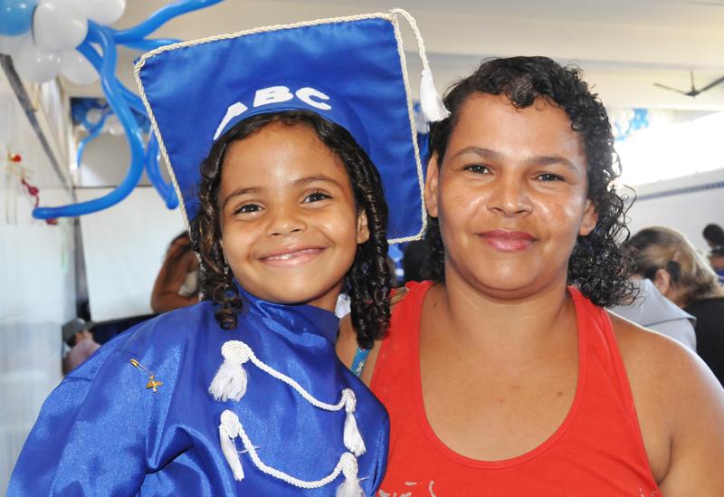Contente com a realização pessoal da pequena Yasmin Vitória, 6 anos, a jovem Jucélia Maria de Jesus, 35 anos, acompanha o trabalho pedagógico desenvolvido na Emef Otília de Araújo Macedo desde que seu primeiro filho, Gabriel, fez parte da formatura dos Doutores do ABC. Este ano, Gabriel cursou a 3ª série do Ensino Fundamental e, assim como a irmã recém-formada, demonstra estar superando expectativas quando o assunto é educação.