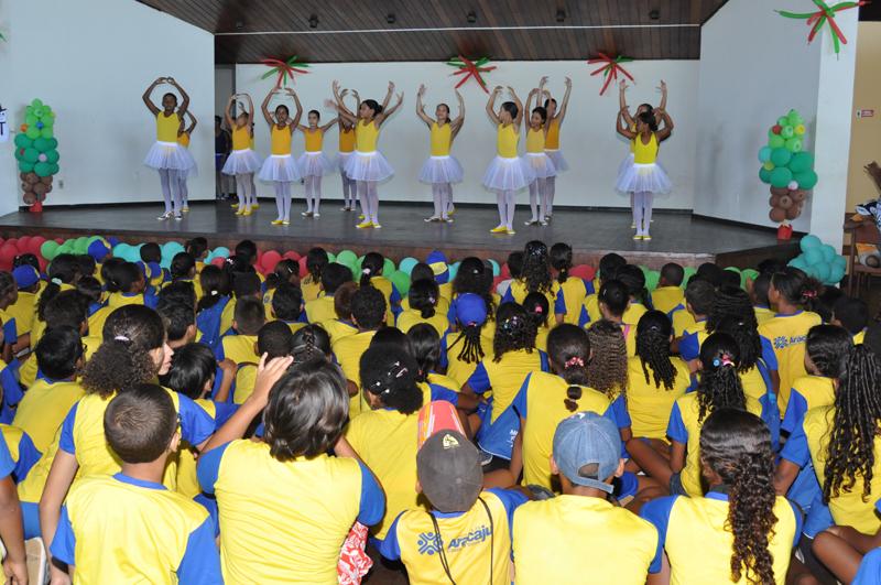 Estudantes das escolas municipais de Ensino Fundamental Elias Montalvão, Tenisson Ribeiro, Maria Carlota de Melo, José Carlos Teixeira e José Conrado de Araújo, localizadas nos bairros Mosqueiro e São Conrado, participaram na tarde dessa terça-feira, 15, do encerramento anual do projeto AABB Comunidade. O projeto é o resultado de uma parceria da Prefeitura de Aracaju, através da Secretaria Municipal da Educação (Semed), com a Associação Atlética Banco do Brasil (AABB) e a Fundação Banco do Brasil, com o objetivo promover a inserção social e desenvolver a complementaridade escolar.