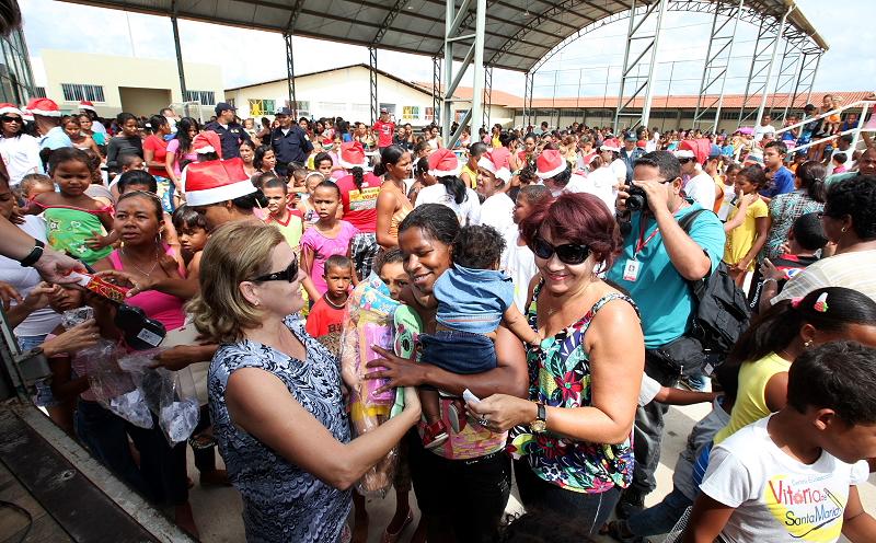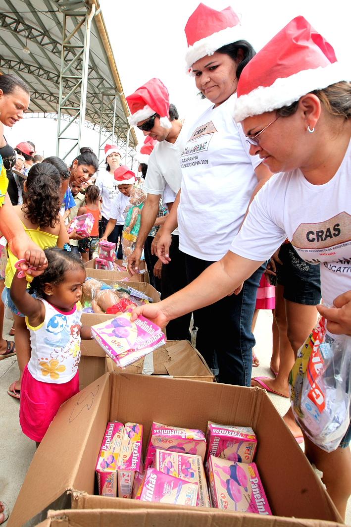 Com gorros de Papai Noel, equipes da Semasc faziam o papel do conhecido bom velhinho. Organizando filas para a distribuição dos presentes, eles entregavam não apenas o brinquedo de cada criança, mas também davam a elas um sentimento de felicidade para o Natal. Segundo a secretária de Assistência Social, Rosária Rabelo, esse momento de alegria se repete há três anos, nos locais da cidade que mais precisam de atenção.