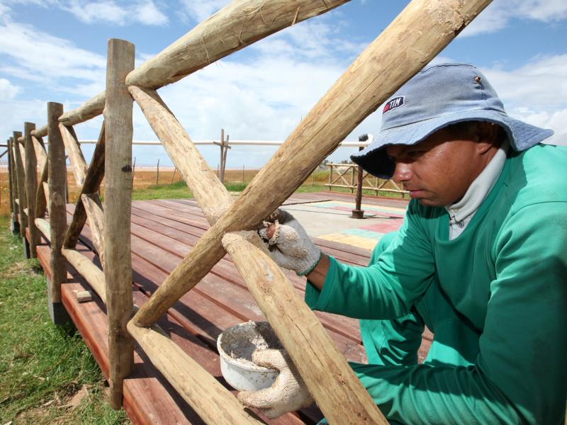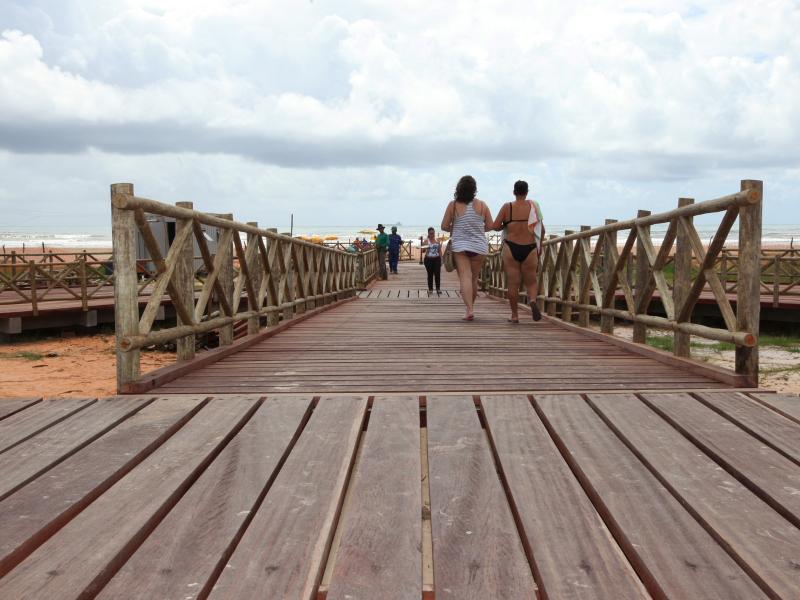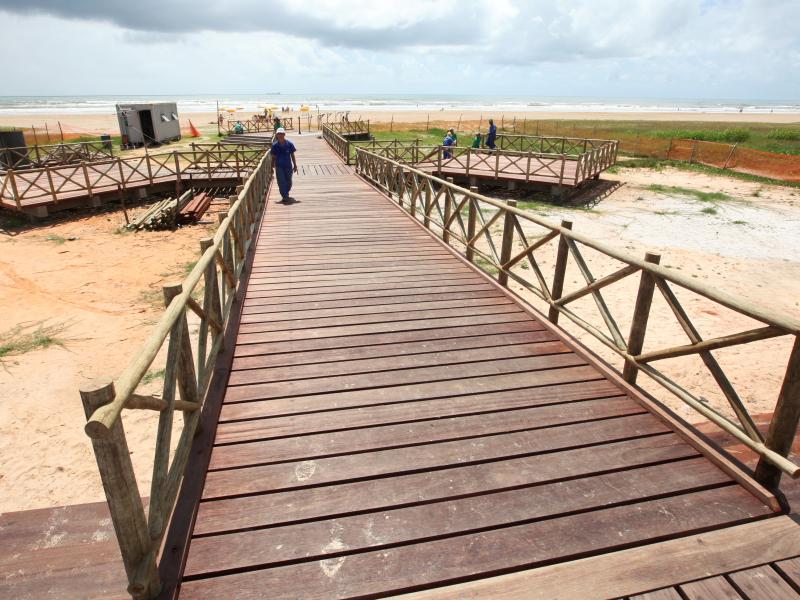Uma equipe com 15 funcionários trabalha intensamente para concluir a obra, que já conta com a presença de banhistas que passam pelo local. Segundo o engenheiro responsável pela melhoria, José Roberto Leite, o deque já está 90% concluído.