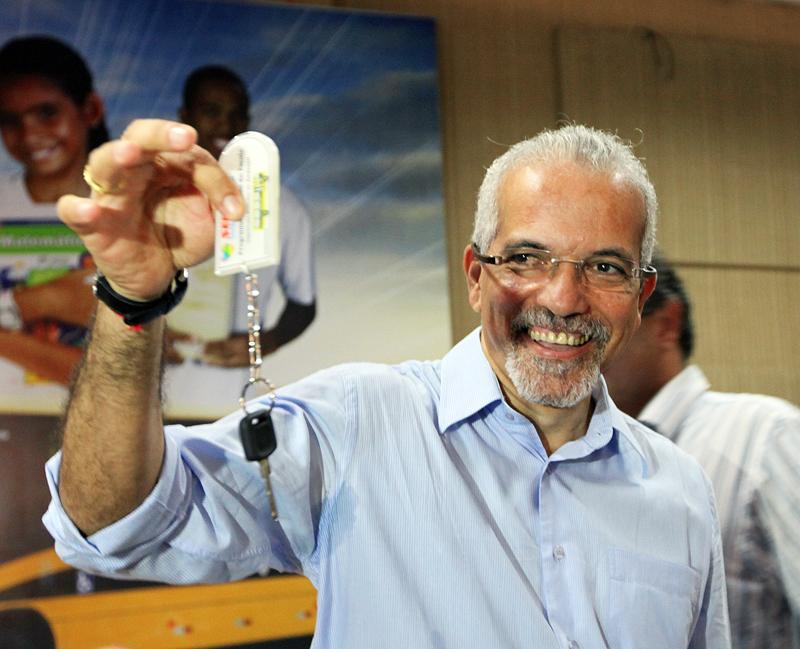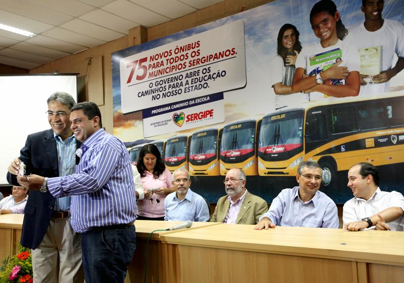O prefeito de Aracaju, Edvaldo Nogueira, recebeu na manhã desta segunda-feira, 18, das mãos do governador Marcelo Déda, a chave de um ônibus que será utilizado para o transporte escolar. Durante o evento, que aconteceu no auditório do Centro de Convenções de Sergipe, outros 74 veículos foram entregues às prefeituras do interior sergipano. Cada cidade recebeu um ônibus escolar.