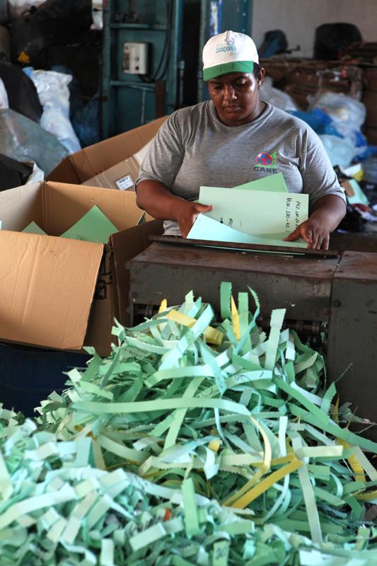 Os caminhões coletam em média 50 toneladas de lixo por mês. Todo esse lixo é levado ao depósito da Care, onde os 40 agentes de reciclagem separam o montante por tipo de material. "Depois disso é feita a triagem do lixo que pode ser reaproveitado", afirma a diretora administrativa da Care, Vaneide Ribeiro.