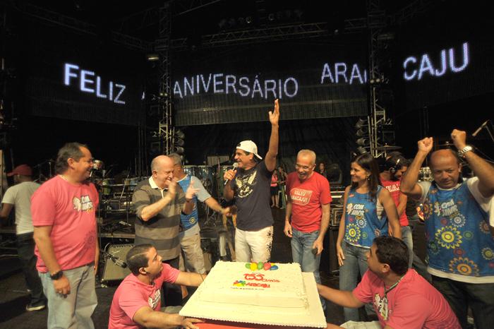 Na noite desta terça-feira, 16, a banda baiana Asa de Águia interrompeu seu show, que estava sendo realizado na Praça de Eventos da Orla da Atalaia, em Aracaju, para homenagear o prefeito Edvaldo Nogueira e abrir as comemorações dos 155 anos da cidade, que seguem durante toda a quarta-feira, 17. A banda presenteou Edvaldo com um grande e colorido bolo, em reconhecimento às melhorias que o prefeito tem implantado no município.