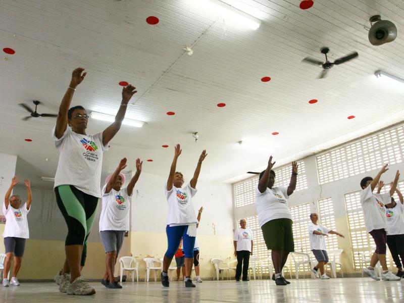 Dona Maria Nete da Silva tem 60 anos, é costureira aposentada e faz exercícios físicos no Cras há seis anos. "Venho toda quarta-feira sem falta. E as atividades têm ajudado bastante a minha saúde. Eu tenho problemas na coluna e a ginástica tem diminuído as minhas dores. Mas o melhor de tudo mesmo é o forró da sexta-feira e as amigas que tenho aqui", conta a bem humorada dona Nete.