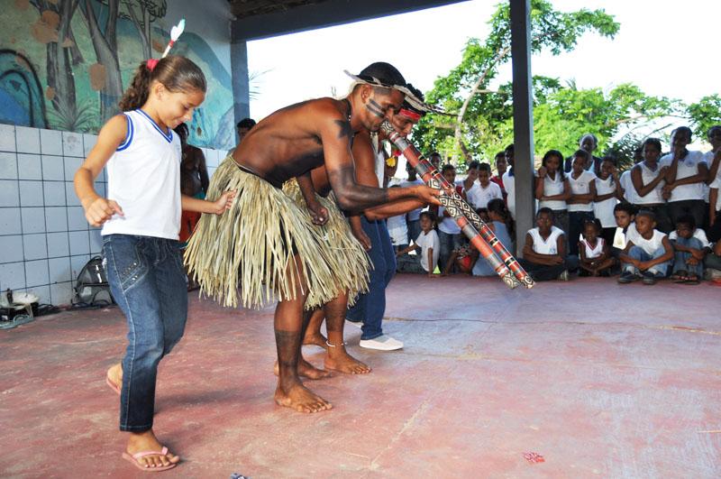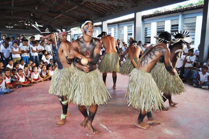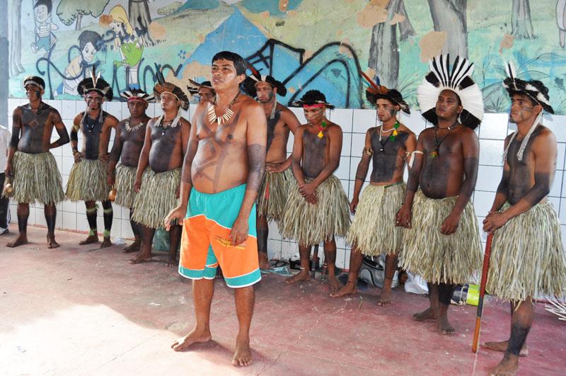 Coordenadores e professores da Escola Municipal de Ensino Fundamental (Emef) João Teles Menezes, localizada no bairro Cidade Nova, promoveram nesta terça-feira, 27, uma programação cultural em homenagem ao Dia do Índio, comemorado em 19 de abril. Mediante apoio da Secretaria Municipal da Educação (Semed), o evento contou com a participação de onze índios da tribo Kariri-Xocó, que realizaram apresentações dançantes e palestras sobre seus costumes.