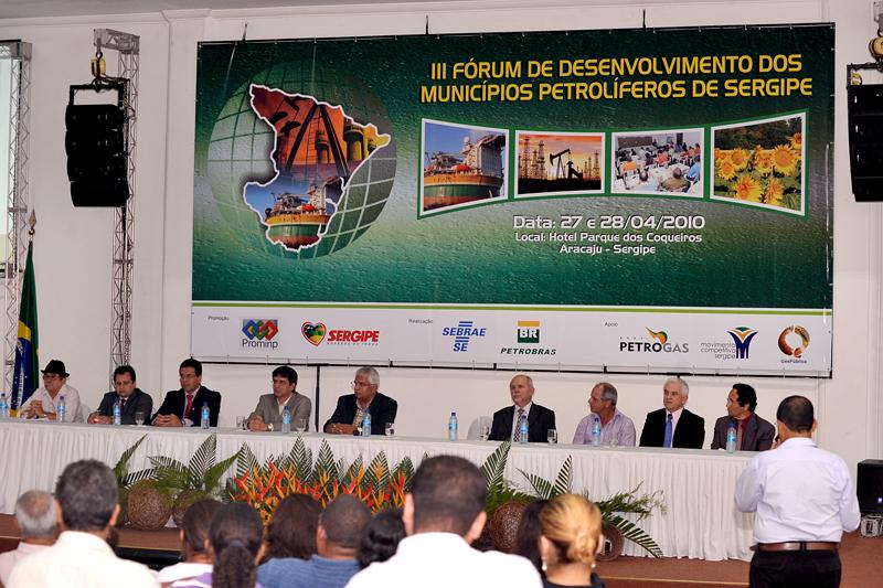 O fórum, que se estende até o dia 28 de abril, tem o objetivo de ampliar o debate sobre a emancipação econômica dos municípios, além de estimular o desenvolvimento sustentável e o empreendedorismo. O evento é uma promoção do Programa de Mobilização da Indústria do Petróleo (Prominp) e do Governo de Sergipe, em parceria com o Serviço de Apoio às Micro e Pequenas Empresas de Sergipe (Sebrae-SE) e a Petrobras, com o apoio da PetroGás, Gespública e do Movimento Competitivo de Sergipe.