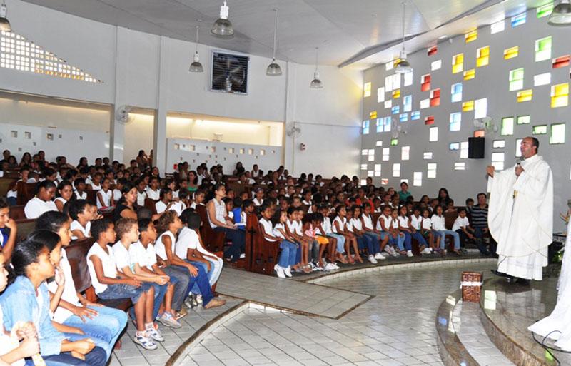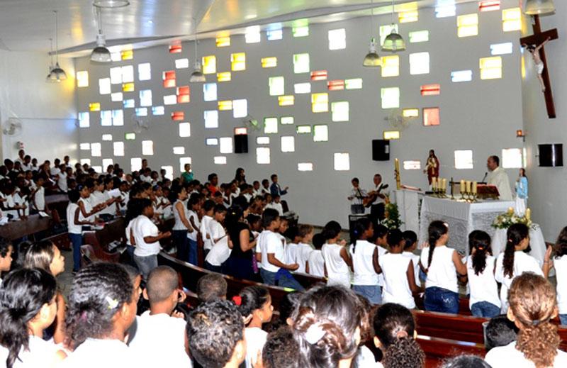 Entoando cânticos e orações, cerca de 300 alunos da Escola Municipal de Ensino Fundamental (Emef) Anísio Teixeira, localizada no bairro Atalaia, participaram de um culto ecumênico realizado esta manhã, 5, na Paróquia Bom Jesus dos Navegantes. O culto, que deu início às comemorações alusivas ao Dia das Mães, também reuniu pais, professores e coordenadores da unidade escolar.