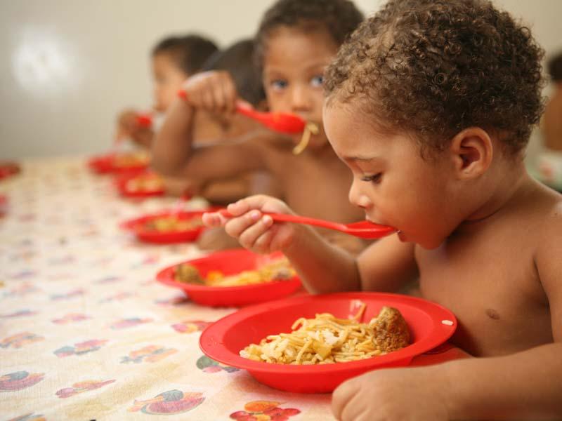 Crianças entre 4 e 12 meses fazem uma alimentação láctea, com mingaus e papinhas de frutas. A partir dessa idade, a alimentação passa a ser mais diversificada, com arroz, feijão, macarrão, verduras, carnes, sopinha e frutas.
