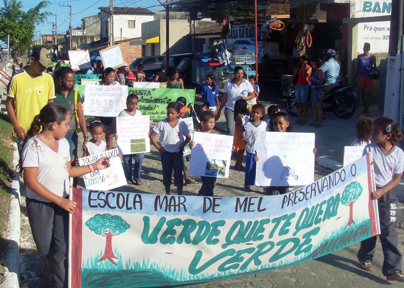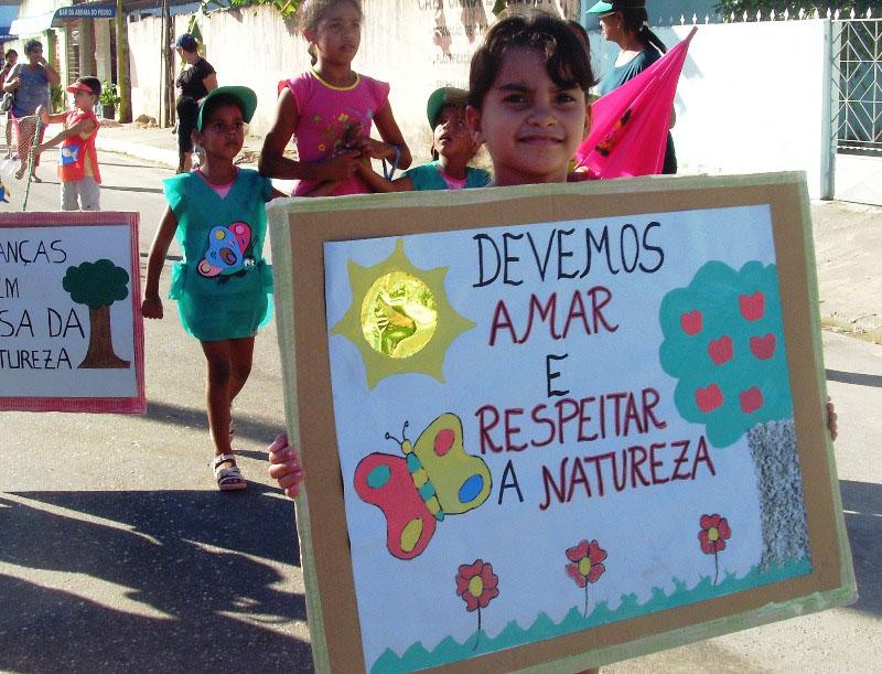 "Tivemos a participação de 60 crianças divididas em dois grupos identificados pelas temáticas ‘A criança em defesa da natureza', conduzido pela professora Maria da Conceição Santos, e ‘O lixo se recicla', pela professora Maria de Fátima dos Santos. Ambos utilizaram faixas e placas com frases de efeito sobre a preservação do meio ambiente, a fim de conscientizar os moradores", conta a coordenadora geral da Emei, Erilene Correia.