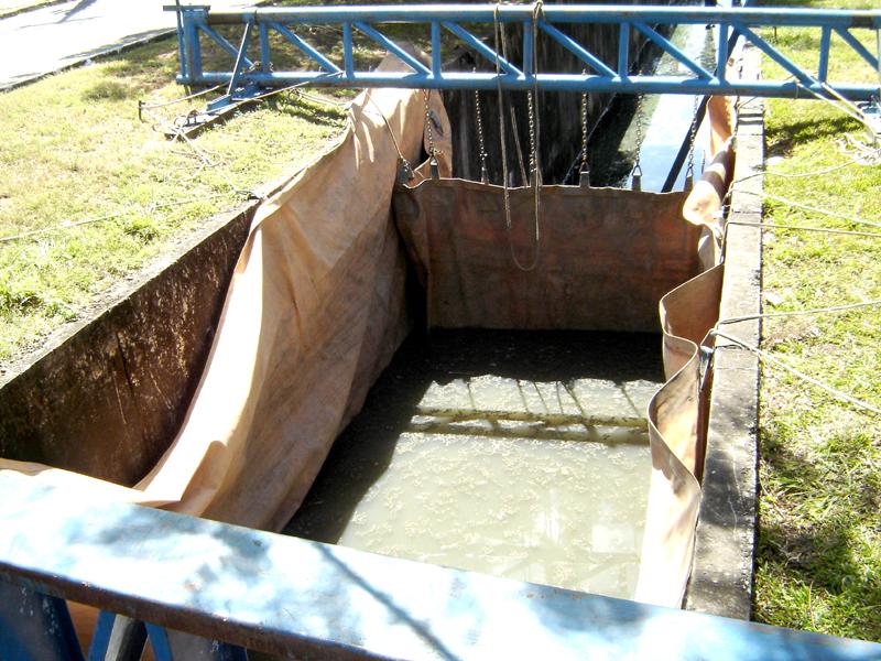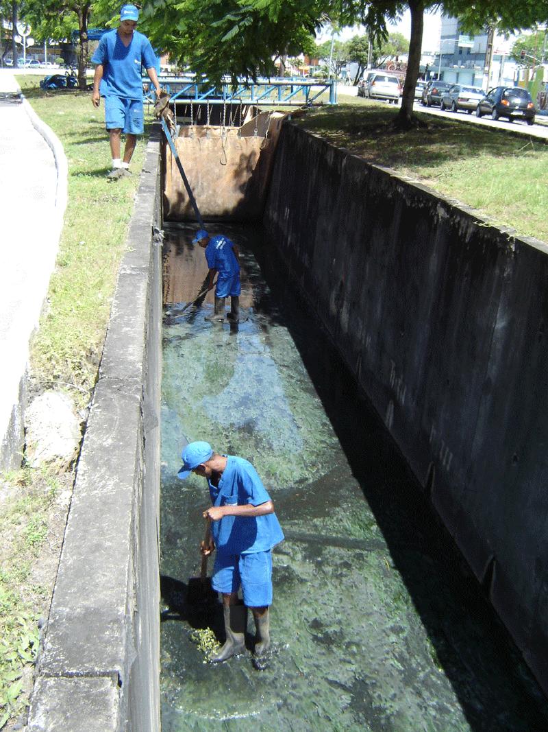 Com a força da própria água são retiradas a vegetação, a lama do fundo e das paredes do canal, além do lixo flutuante. O fluxo provocado pela liberação da água arrasta a sujeira, que fica retida numa tela que posteriormente é retirada pela equipe.