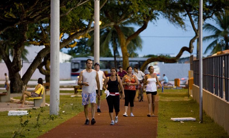 "Isso aqui é uma maravilha. Todos os dias agora marco presença, venho fazer minha caminhada diária e encontrar as amigas. Aqui antes era tudo mato. O terreno abandonado, sem vida, servindo apenas à marginalidade. Agora é vida, é alegria e satisfação para todos os moradores do Augusto Franco, em especial os que participaram da sua criação, como eu, que moro aqui desde a sua fundação", afirma a aposentada Maria Diana Magalhães.