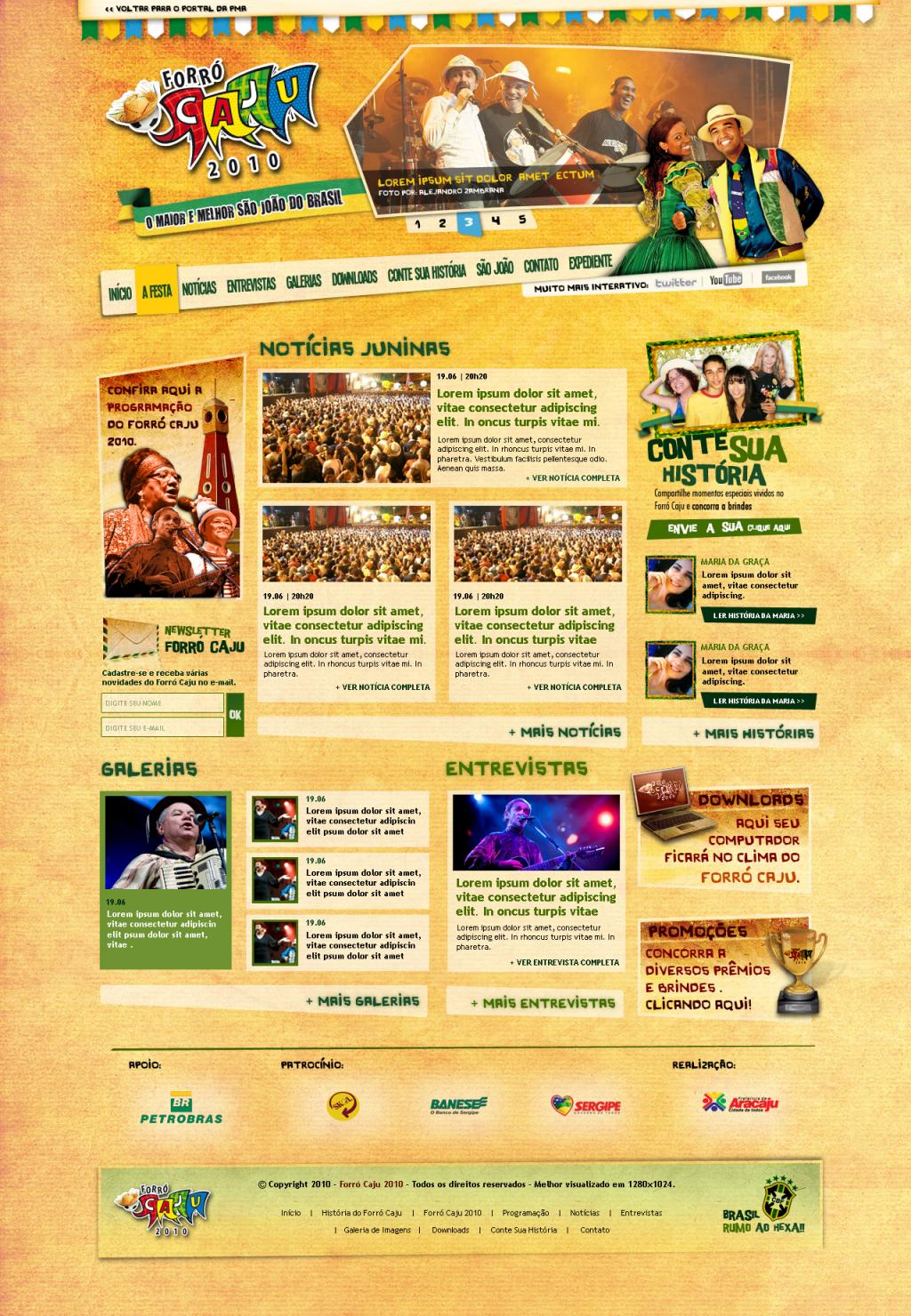 Considerado um dos maiores eventos juninos do país, o Forró Caju 2010 vai reunir 125 atrações em mais de 187 horas de show e 12 dias de festa. E como ocorrem todos os anos, a Secretaria de Comunicação da Prefeitura de Aracaju preparou um hotsite especial sobre os festejos juninos, um importante aliado do público para ter acesso a fotos, informações, matérias especiais, entrevistas com os artistas, notícias em tempo real e tudo o que de mais quente rola nessa grande festa da cultura popular.
