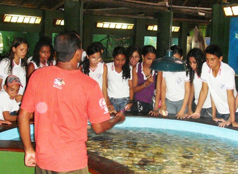 Durante a visita, os estudantes conheceram diferentes espécies animais e vegetais encontradas em Sergipe e ouviram dicas sobre como armazenar corretamente o lixo nas praias e nas residências.