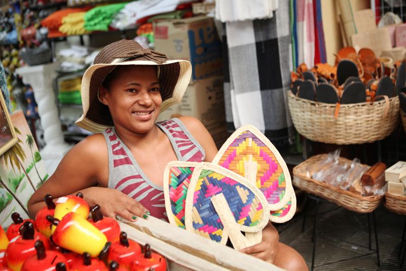 Aproveitando o tempo livre da viagem de trabalho à capital sergipana, a engenheira cartográfica Nádia Haga visitou o mercado Antônio Franco e disse ter ficado encantada com as formas variadas e as cores fortes do artesanato sergipano.