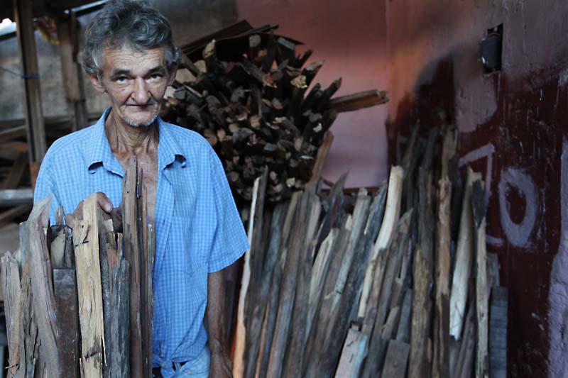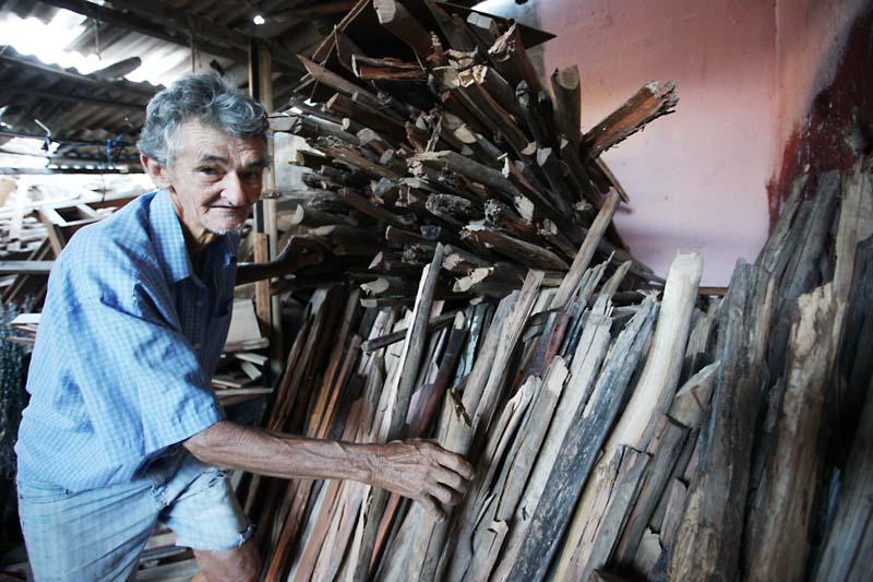 Seu José Maria passa o ano recolhendo e comprando madeira. Apesar da idade avançada, ainda encontra forças para cortá-la com o machado e assim vai dando tamanho e forma às fogueiras, que depois vende em sua própria casa, a de número 627 da rua Nestor Sampaio.