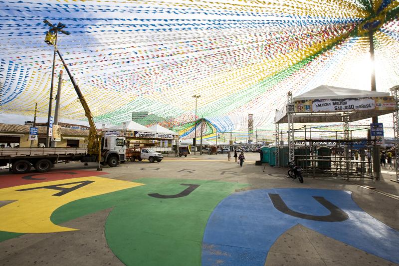 A estrutura tem três entradas - uma principal e duas laterais - com cerca disciplinadora e três palcos - dois principais medindo 14 x 14 m² e um alternativo de 12 x 12 m². Também já estão montados o arraial para apresentação de quadrilhas e trios pé-de-serra, os 10 camarotes dos patrocinadores, apoiadores e imprensa, além do Camarote da Cidadania, destinado a pessoas com dificuldade de locomoção.
